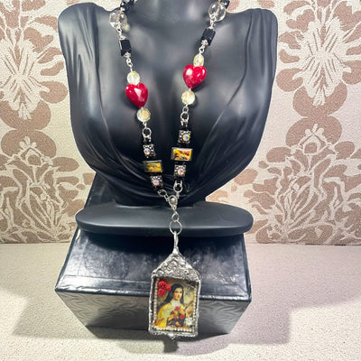 Handcrafted St Teresa Glass Shadow Box Pendant & Artisan Metalwork & Necklace