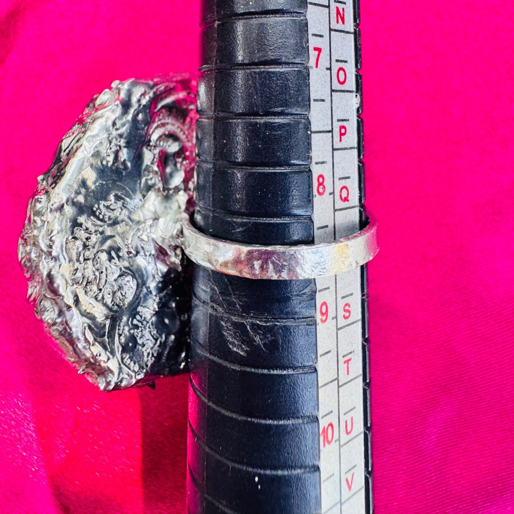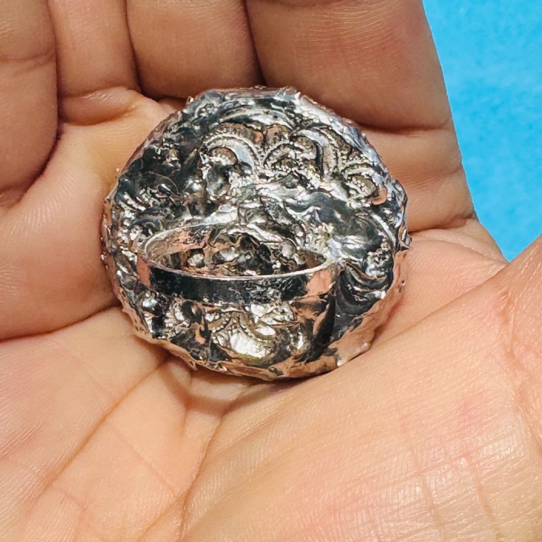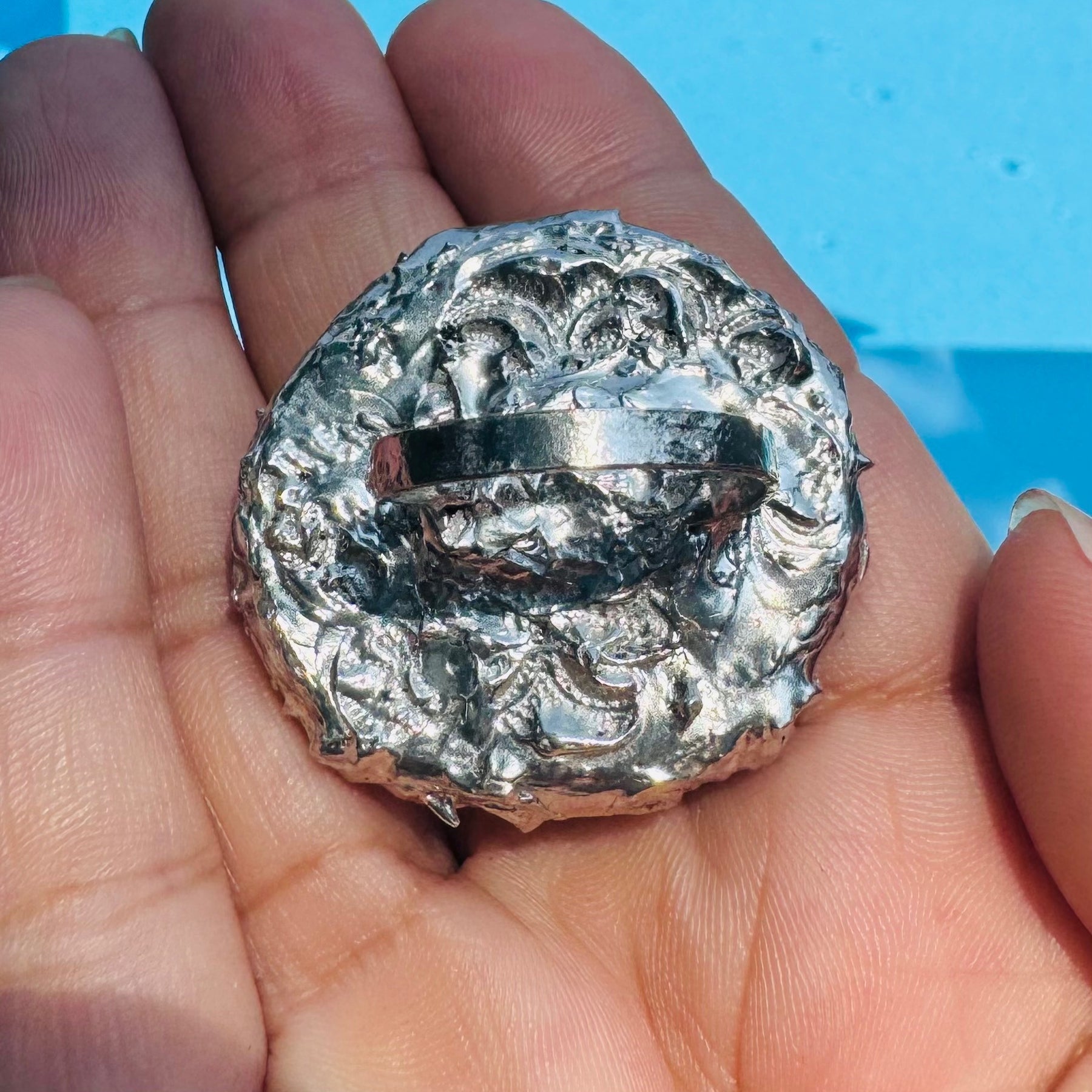 Once upon a time, a piece of broken china lay forgotten, until a skilled artisan breathed life into it, transforming it into a stunning silver ring. Its vivid blue hues tell tales of elegance, while the intricate metalwork whispers secrets of a bygone era. Adorn your hand with a piece of history.