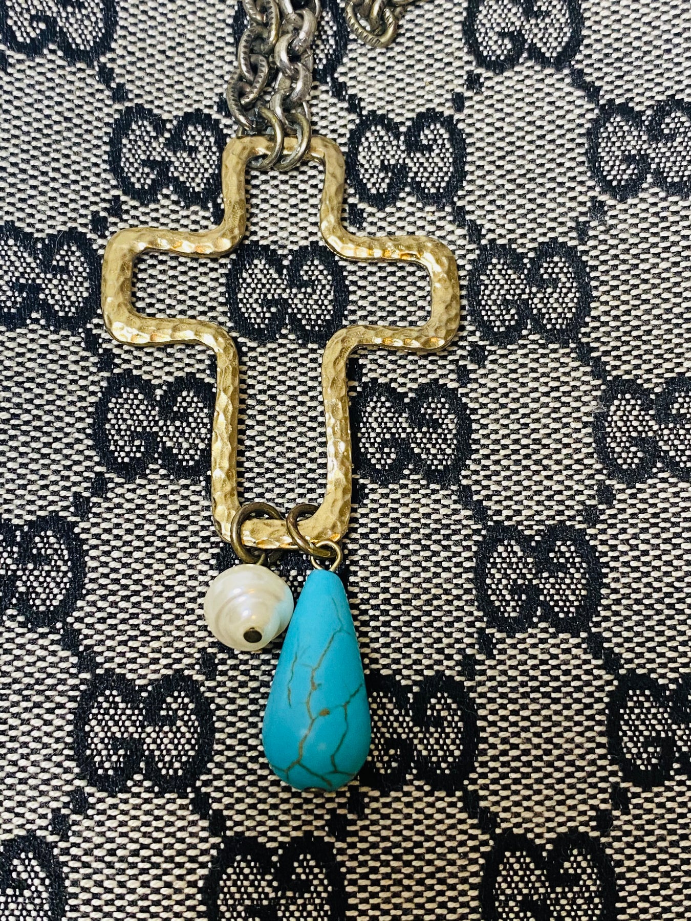 Reworked Vintage Luxury Canvas Bag Cross Pendant - Fragments of Vintage Jewelry