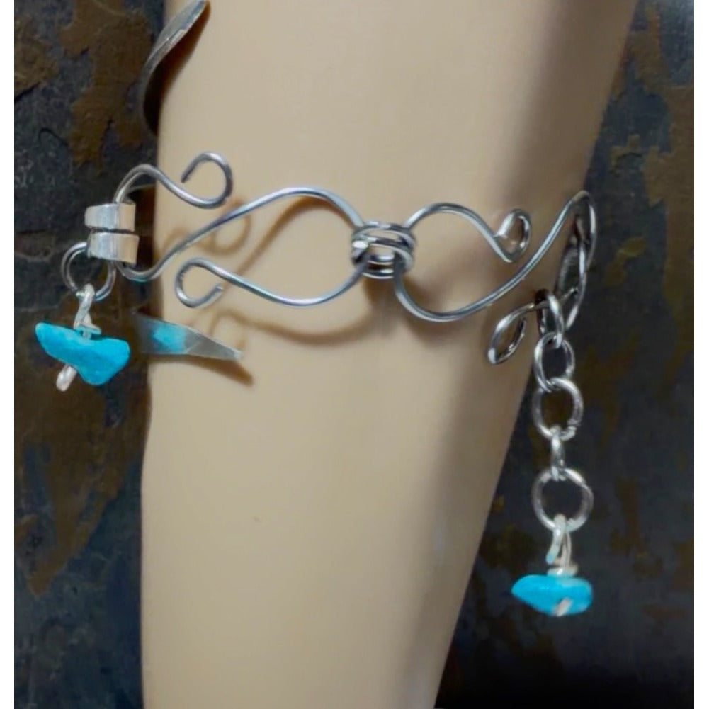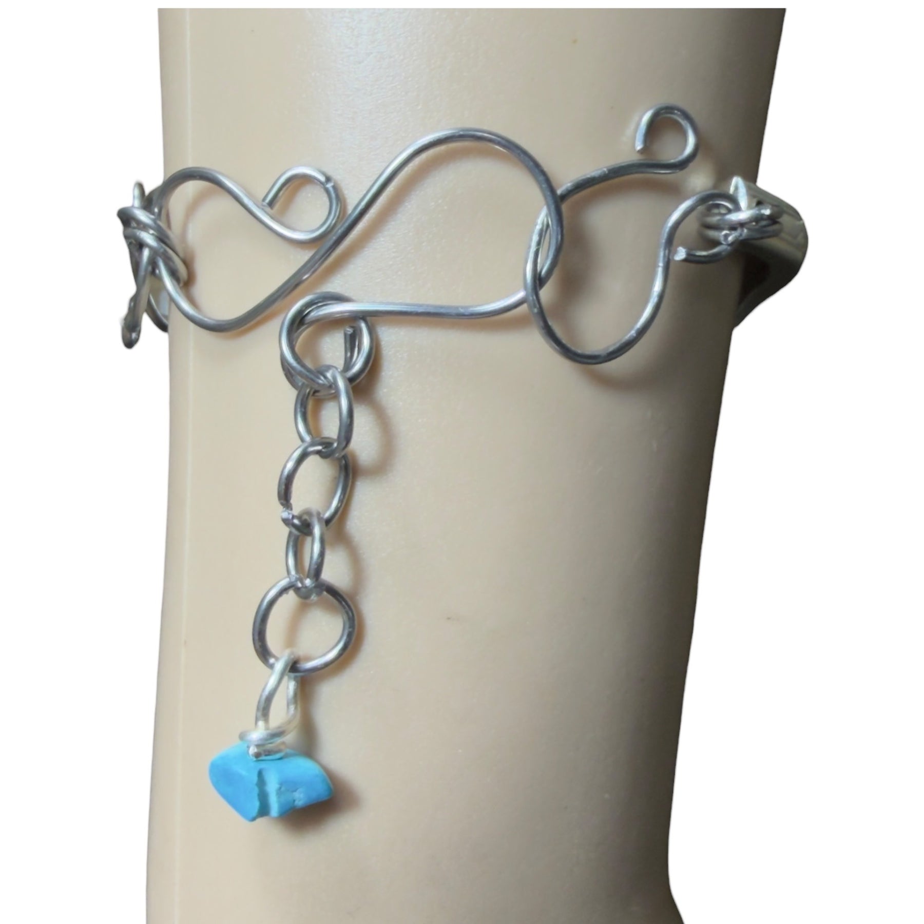 • Materials: Upcycled Tudor Plate silverware, stainless steel links, natural turquoise