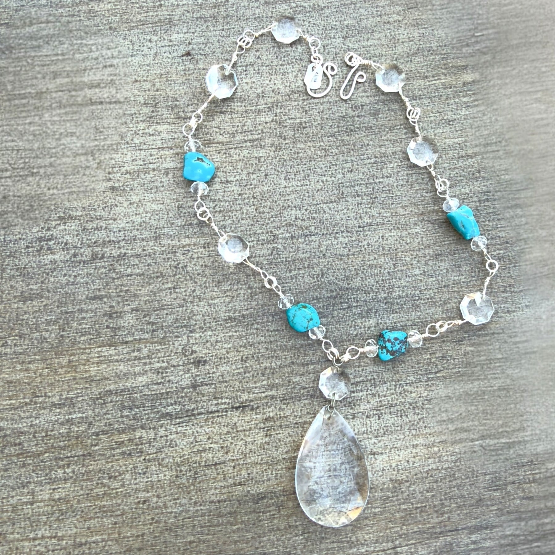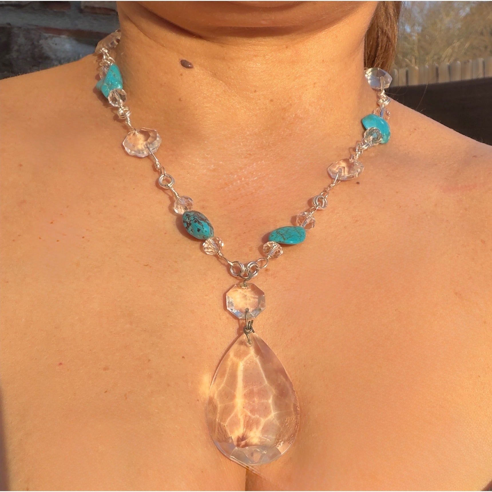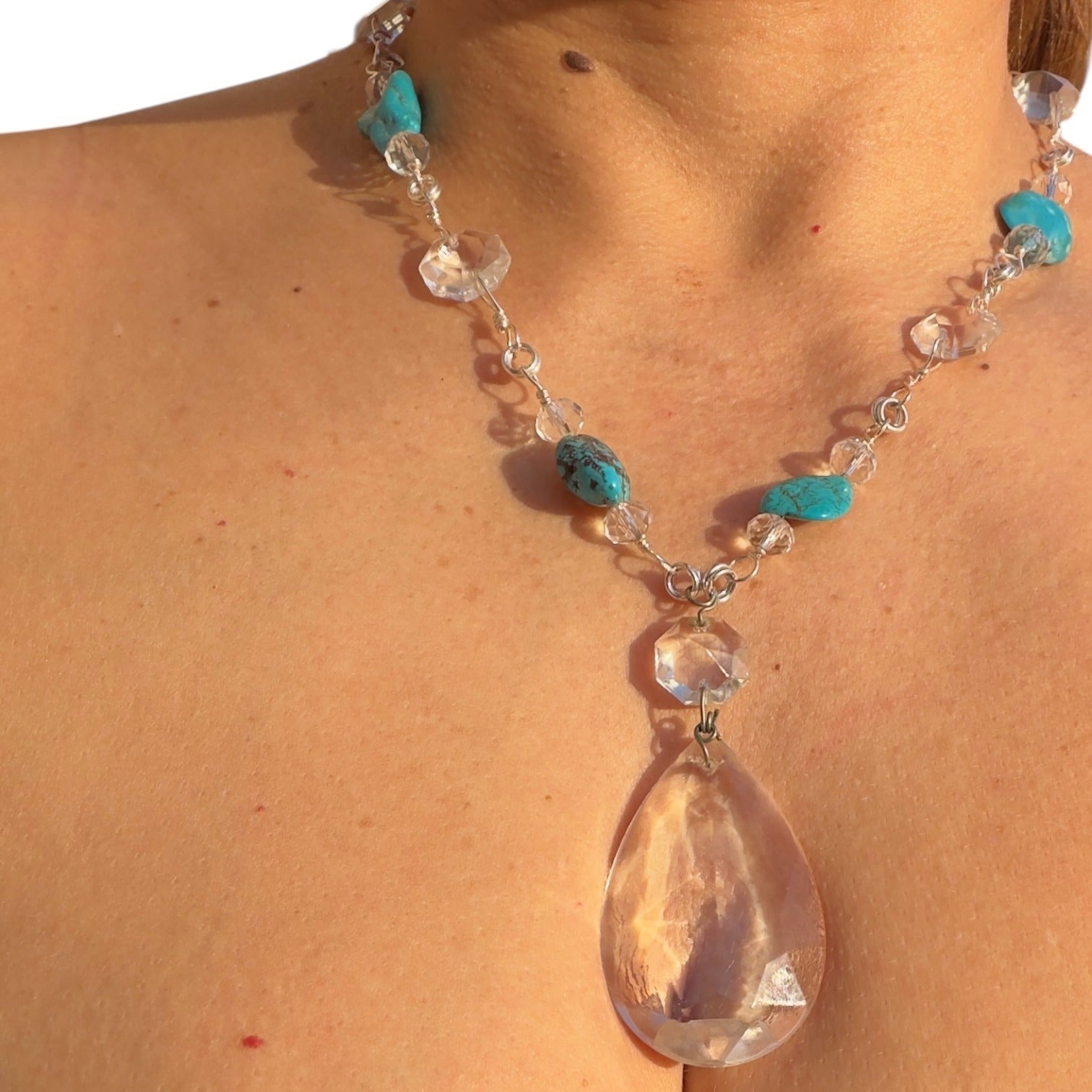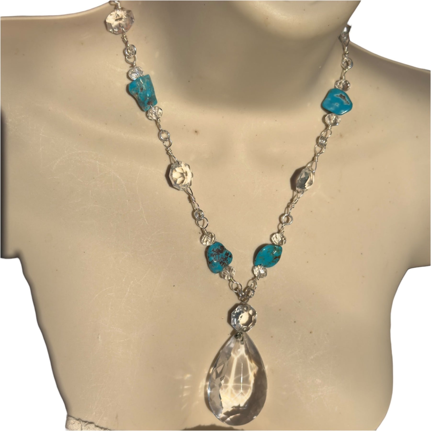 Rescued Chandelier Crystals & Turquoise Necklace - Silver Plated & Hand Wrapped