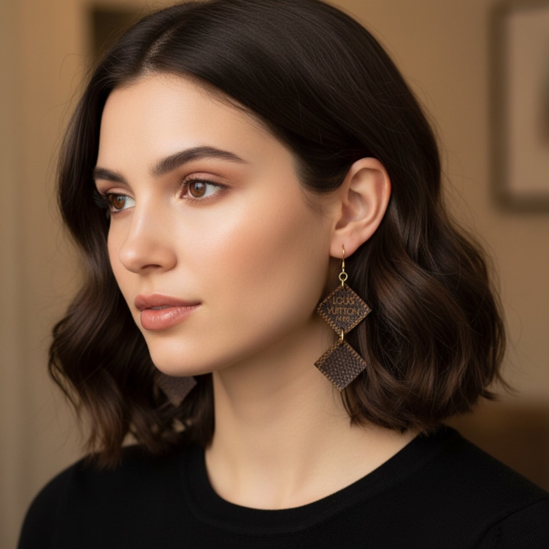 These versatile earrings effortlessly elevate any outfit, from casual weekend wear to sophisticated evening looks. The iconic designer canvas pattern adds instant recognition and luxury appeal, while the geometric design keeps them modern and fresh. Perfect for fashion-forward individuals who appreciate sustainable luxury and unique statement pieces.
