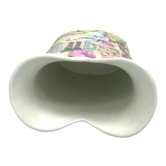 Discover the beauty of this exquisite upcycled Italian ceramic vase, transformed into a stunning work of art through masterful decoupage and hand-molded clay accents. This numbered Italian vase has been given new life with enchanting garden scenes on both sides, making it a captivating display piece from every angle.